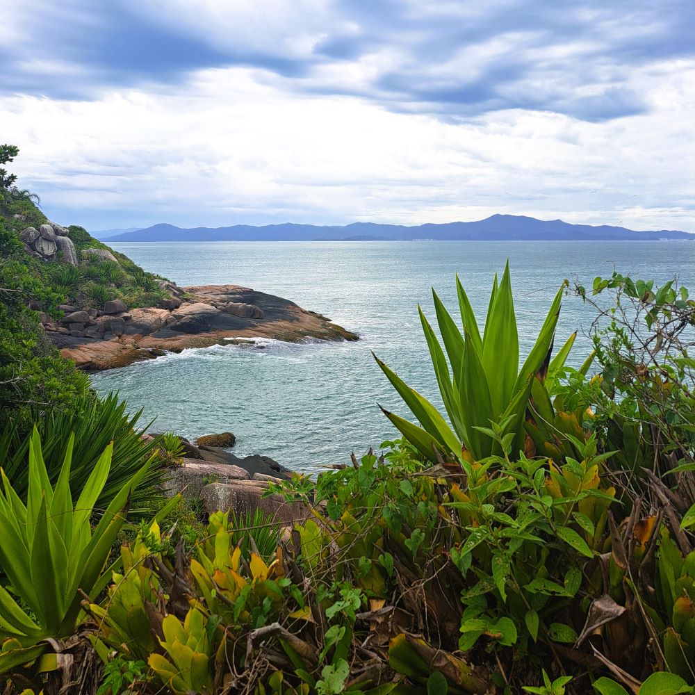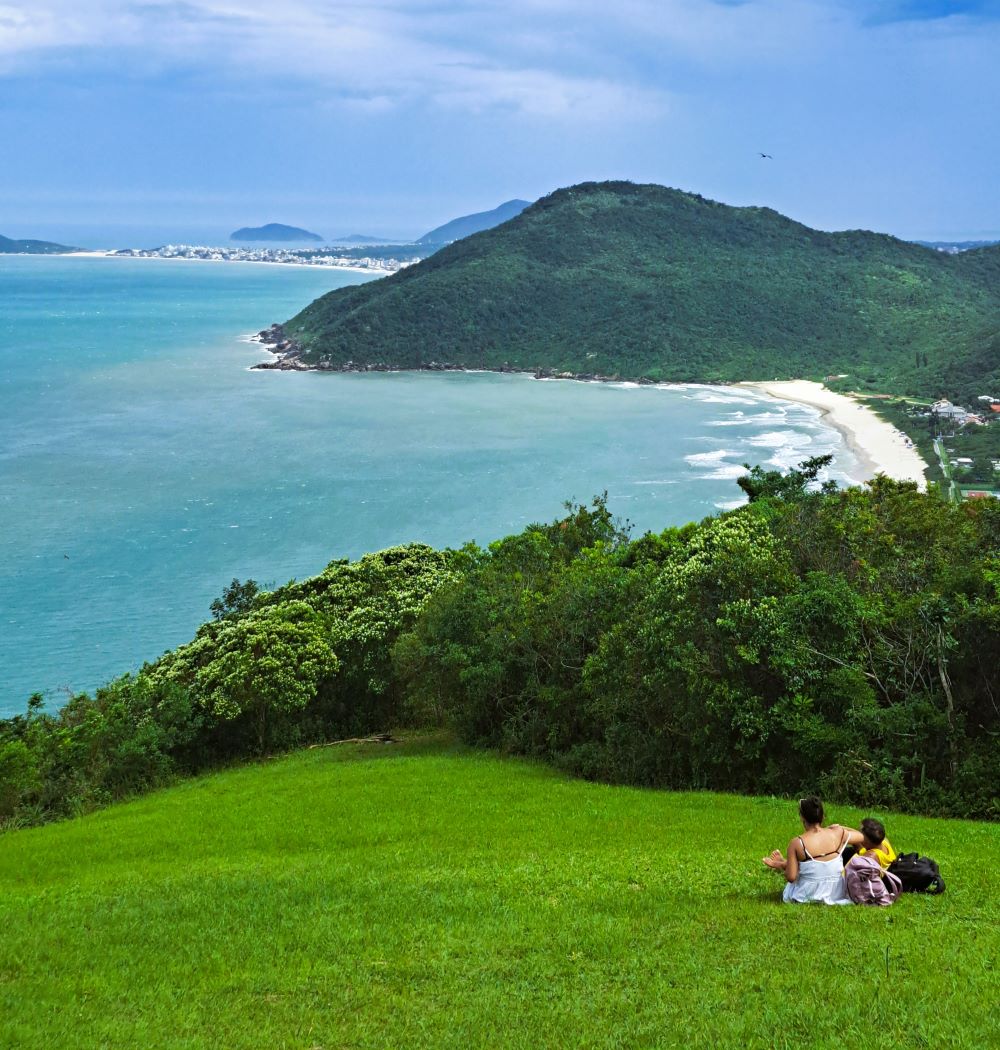 Tak jak w całej okolicy, we Floripa możemy podziwiać krajobrazy, wspinając się na punkty widokowe, których jest na całej wyspie bardzo dużo. Od nas najbliżej było do Trilha Morro do Rapa Sul. Podjechaliśmy kilka kilometrów samochodem i zostawiliśmy go na małym parkingu przy punkcie widokowym Mirante da Brava, a stamtąd zaczęliśmy wspinaczkę na wzgórze. Po obfitych opadach deszczu w poprzednim tygodniu ścieżki były zabłocone i śliskie, pomimo wysiłków buty nie przetrwały w suchym stanie. Wybierając się na trilhas, niezależnie od pogody najlepiej zapomnieć o klapkach i włożyć solidne buty sportowe albo inne, odpowiednie do górskich wędrówek.