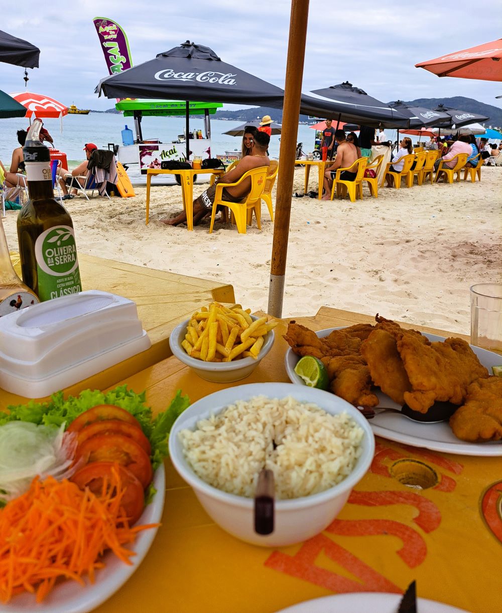 Do Floripa przyjechaliśmy z Bombinhas (o pobycie w tym kurorcie piszę TUTAJ). Aby dostać się do Canasvieiras, trzeba przejechać pół wyspy, ale jedzie się wygodnie kilkupasmową drogą, wyraźnie oznakowaną – korzystaliśmy jak zwykle z Google Maps. Po przyjeździe i zameldowaniu w pousadzie od razu poszliśmy na plażę na obiad. W takich kurortach restauracje są otwarte cały dzień, nie trzeba się martwić, że jedzenie na wagę jest dostępne tylko do 15.00 a potem trzeba czekać do wieczora aż knajpy się znowu otworzą.
